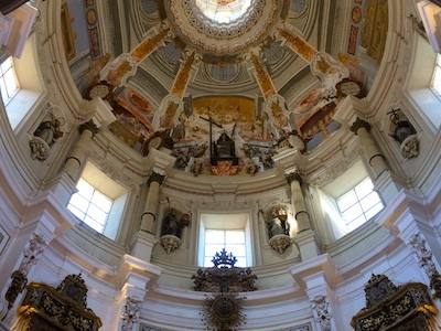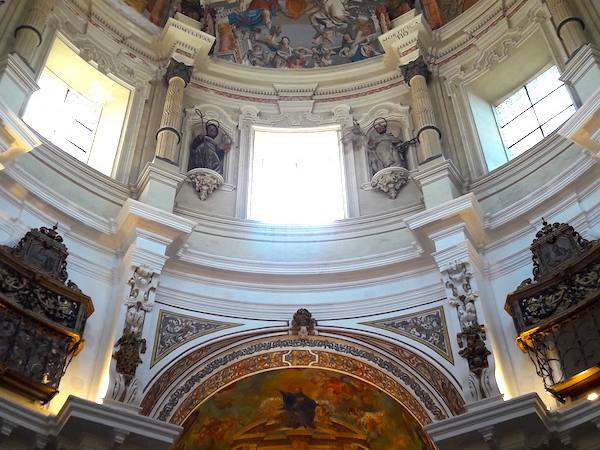 La Iglesia de San Luis de los Franceses, erigida por la Compañía de Jesús a partir del año 1699, tras una donación recibida por la orden, dispone de un programa iconográfico realizado al gusto e los Jesuitas con el que intentaban, por un lado, impactar en el fiel que acudiese al templo y por otro inculcar en el novicio las ideas de sacrificio, esfuerzo y entrega a Dios y a la orden.