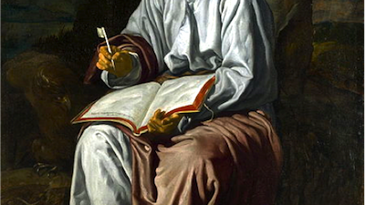 Las obras de Velázquez estaban situadas en la sala Capitular, eran un San Juan Evangelista en la Isla de Patmos, realizada en 1618 y se encuentra en la National Gallery de Londres. Aparece sentado, con un libro en la mano en el que escribe el contenido de la revelación sobre sus rodillas. Los otros libros son el Evangelio y las tres Epístolas que escribe, se encuentran cerrados. En la parte izquierda aparece el contenido de la visión, tomado del Apocalipsis (12,1-4) e interpretado por la figura de la Inmaculada Concepción.